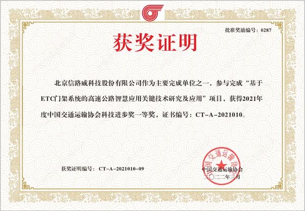 喜報(bào)!信路威榮獲中國交通運(yùn)輸協(xié)會(huì)科學(xué)技術(shù)獎(jiǎng)一等獎(jiǎng)