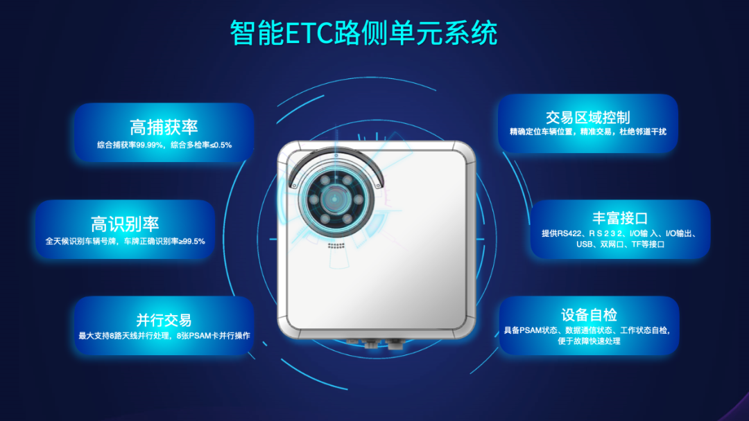 信路威隆重推出智能ETC路側單元系統(tǒng),該系統(tǒng)是融合視頻、射頻、雷達等多種方式于一體的ETC-RSU系統(tǒng),具有高捕獲率、高識別率、并行交易、交易區(qū)域控制等特點,可應用于收費車道、ETC門架、服務區(qū)匝道等高速公路場景。