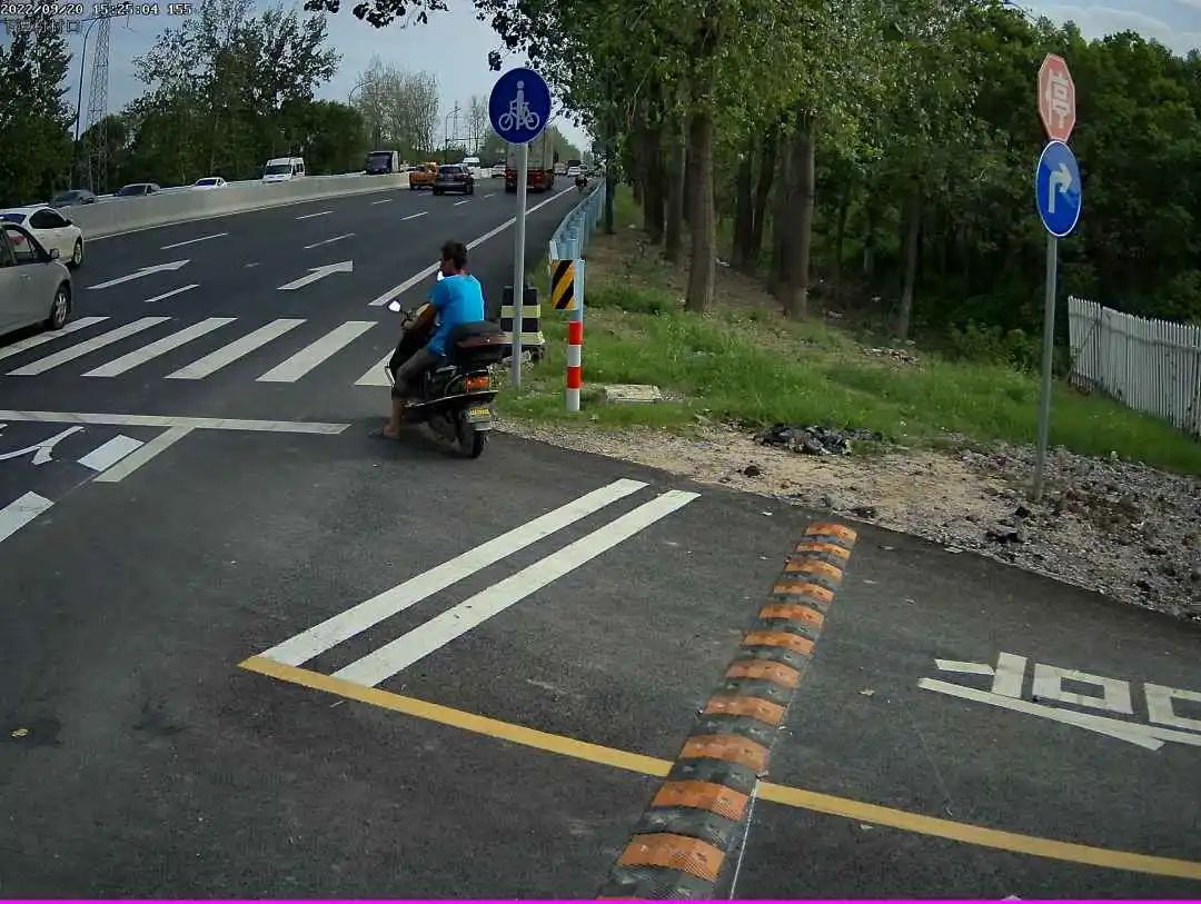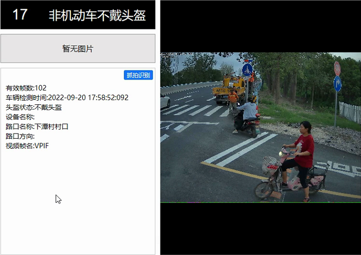 路口全景攝像機(jī),自動(dòng)抓拍經(jīng)過的非機(jī)動(dòng)車,智能分析非機(jī)動(dòng)車駕駛?cè)耸欠衽宕黝^盔,未戴頭盔則語音提醒,未戴頭盔檢出率≥95%。
