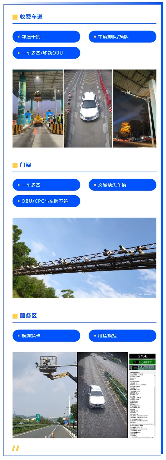 信路威智能ETC路側(cè)單元作為路側(cè)核心設(shè)備,主要部署在收費車道、門架、服務(wù)區(qū)、隧道等場景。實現(xiàn)車輛高精度的捕獲、車牌識別、多維度的車輛信息融合,能夠解決車輛收費交易是否存在異常的問題,例如一車多簽、車輛無簽、車牌不符、鄰道干擾、車輛插隊、ETC交易缺失記錄、換牌換卡、甩掛換掛等。